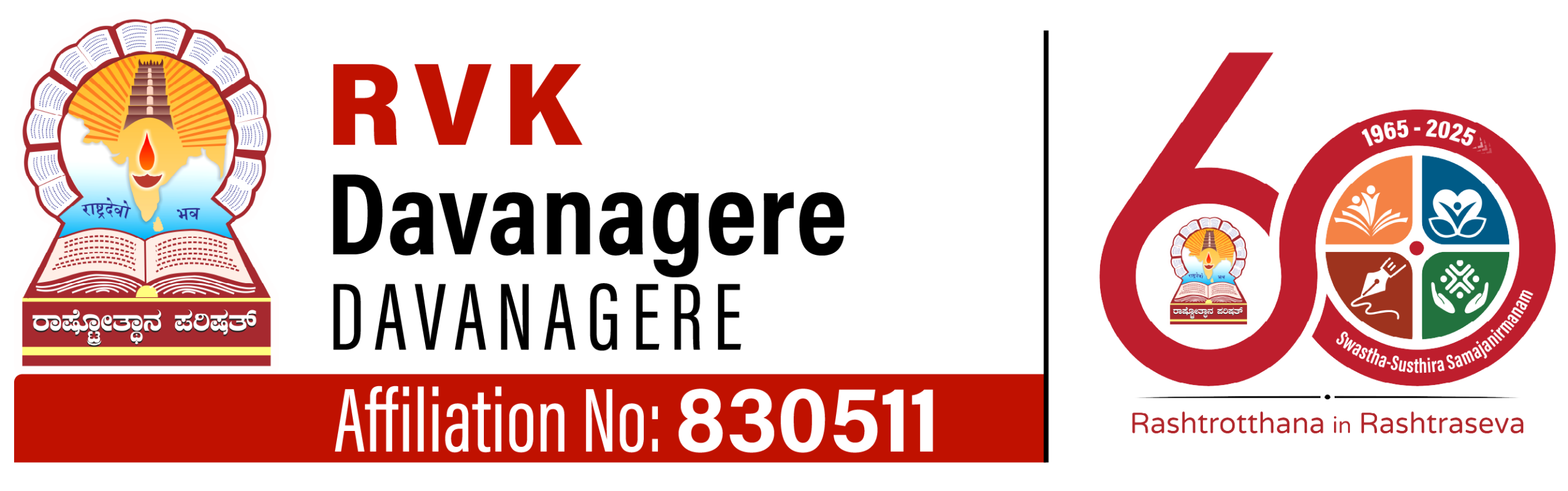 Rashtrotthana Vidya Kendra (CBSE), located in the Davanagere district of Karnataka. The school is affiliated to Central Board of Secondary Education (Affiliation No, 830511). Spread over 6 acres of land situated in serene and scenic area. Rashtrotthana Vidya Kendra (CBSE) has more than 1500 students and highly qualified, experienced faculty members. School provides a distinctive educational environment that enables persons to grow not only in intellectual capacities, and also in physical, psychological, emotional and spiritual dimensions of their being. The school has well-ventilated digital classrooms, Play area for pre-primary, a well-stocked library, well equipped science laboratories, smart class, Playground and advanced computer lab with internet facilities. There are also audio-visual facilities, yoga and commodious sports facilities for indigenous and modern games. Our school assemblies are musical and prayers are selected from the Sanskrit texts. The purpose and the aim of our education are to create the right climate and environment so that the child may develop fully as a complete human being.