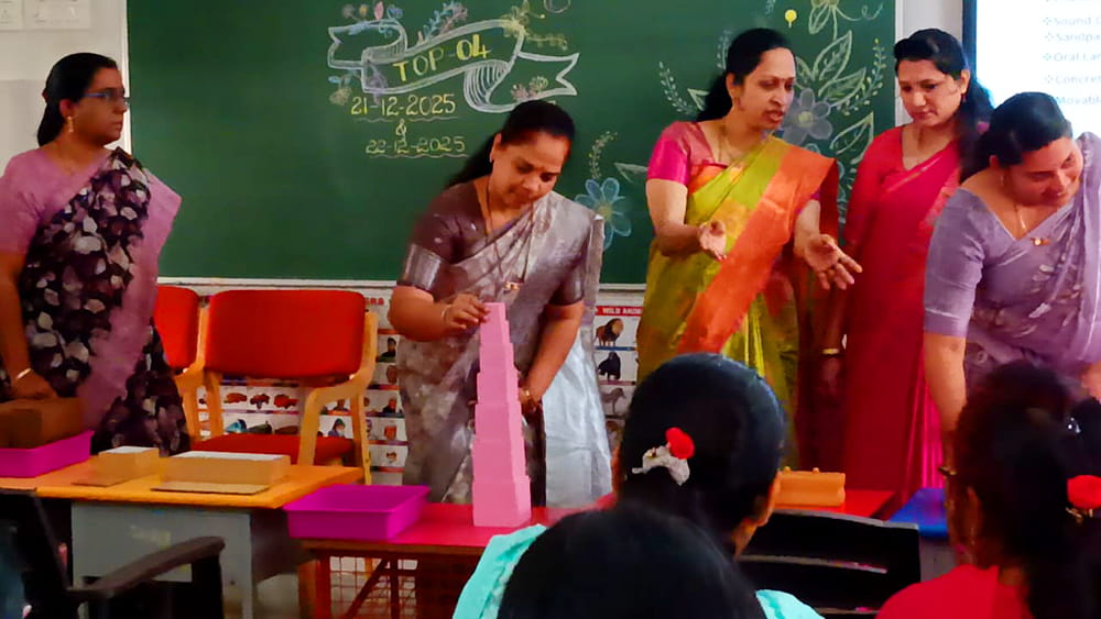ದಾವಣಗೆರೆ, ಡಿ. 22: ರಾಷ್ಟ್ರೋತ್ಥಾನ ವಿದ್ಯಾಕೇಂದ್ರ – ದಾವಣಗೆರೆಯಲ್ಲಿ ಶಿಕ್ಷಕರ ವೃತ್ತಿಪರ ಕೌಶಲ್ಯ, ವೈಯಕ್ತಿಕ ಬೆಳವಣಿಗೆ ಮತ್ತು ಮಕ್ಕಳ ಬೆಳವಣಿಗೆಯ ತಿಳುವಳಿಕೆಯನ್ನು ಹೆಚ್ಚಿಸುವ ಉದ್ದೇಶದಿಂದ ಶಿಕ್ಷಕರ ಪುನಶ್ಚೇತನ ಕಾರ್ಯಾಗಾರವನ್ನು ನಡೆಸಲಾಯಿತು. ಶ್ರೀಮತಿ ಗೌತಮಿ ಮತ್ತು ಮಧುಲಿಕಾ ಅವರು ನಡೆಸಿದ ಮಾಂಟೆಸ್ಸರಿ ಸಾಮಗ್ರಿಗಳ ತರಬೇತಿಯ ಮೇಲೆ ಈ ಅವಧಿಗಳು ಕೇಂದ್ರೀಕೃತವಾಗಿದ್ದವು. ಅಲ್ಲಿ ಶಿಕ್ಷಕರು ಪ್ರಾಯೋಗಿಕವಾಗಿ, ಮಕ್ಕಳ ಕೇಂದ್ರಿತ ಶಿಕ್ಷಣವನ್ನು ಉತ್ತೇಜಿಸಲು ಕಲಿಕಾ ಸಾಧನಗಳ ಪರಿಣಾಮಕಾರಿ ಬಳಕೆಯ ಮೇಲೆ ಕೇಂದ್ರೀಕರಿಸಿದರು. ಈ ಅವಧಿಗಳು ಆಕರ್ಷಕ ಮತ್ತು ಅಭಿವೃದ್ಧಿಗೆ ಸೂಕ್ತವಾದ ತರಗತಿ ವಾತಾವರಣವನ್ನು ಸೃಷ್ಟಿಸುವುದನ್ನು ಒತ್ತಿಹೇಳಿದವು. ಮತ್ತೊಂದು ಪ್ರಮುಖ ಅವಧಿಯು ಮಕ್ಕಳ ನಡವಳಿಕೆ ಮತ್ತು ಅಭಿವೃದ್ಧಿಯನ್ನು ಅರ್ಥಮಾಡಿಕೊಳ್ಳುವುದು. ಈ ಅವಧಿಯು ವಿವಿಧ ಬೆಳವಣಿಗೆಯ ಹಂತಗಳಲ್ಲಿ ಮಕ್ಕಳ ಮಾನಸಿಕ ಮತ್ತು ಭಾವನಾತ್ಮಕ ಅಗತ್ಯಗಳ ಬಗ್ಗೆ ಅಮೂಲ್ಯವಾದ ಒಳನೋಟಗಳನ್ನು ಒದಗಿಸಿತು. ಶಿಕ್ಷಕರು ತಮ್ಮ ಕಲಿಕೆಯ ಪ್ರಯಾಣದಲ್ಲಿ ವಿದ್ಯಾರ್ಥಿಗಳನ್ನು ಉತ್ತಮವಾಗಿ ಬೆಂಬಲಿಸಲು ಸಹಾಯ ಮಾಡಿತು. ಈ ಅವಧಿಯನ್ನು ಶ್ರೀಮತಿ ವಾಣಿ ಮತ್ತು ಶ್ರೀಮತಿ ಗಾಯತ್ರಿ ಮಠ ಅವರು ನಡೆಸಿಕೊಟ್ಟರು. “ಆಂತರಿಕ ಪಯಣ – ಶಿಕ್ಷಕರಿಗಾಗಿ ವೈಯಕ್ತಿಕ ಬೆಳವಣಿಗೆ ಮತ್ತು ಭಾವನಾತ್ಮಕ ಸಮತೋಲನ” ಎಂಬ ವಿಶೇಷ ಅಧಿವೇಶನವು ಬೋಧನಾ ವೃತ್ತಿಯಲ್ಲಿ ಸ್ವಯಂ ಅರಿವು, ಭಾವನಾತ್ಮಕ ಸ್ಥಿರತೆ ಮತ್ತು ಮಾನಸಿಕ ಯೋಗಕ್ಷೇಮದ ಮಹತ್ವವನ್ನು ಎತ್ತಿ ತೋರಿಸಿತು. ಹೆಚ್ಚು ಪರಿಣಾಮಕಾರಿ, ಸಹಾನುಭೂತಿ ಮತ್ತು ಸಮತೋಲಿತ ಶಿಕ್ಷಕರಾಗಲು ಶಿಕ್ಷಕರು ತಮ್ಮ ಆಂತರಿಕ ಬೆಳವಣಿಗೆಯ ಬಗ್ಗೆ ಚಿಂತಿಸುವಂತೆ ಪ್ರೋತ್ಸಾಹಿಸಲಾಯಿತು. ಶ್ರೀಮತಿ ಗೌತಮಿ ಮಠ ಮತ್ತು ಶ್ರೀಮತಿ ಗಾಯತ್ರಿ ಮಠ ಅವರು ಅಧಿವೇಶನವನ್ನು ನಡೆಸಿದರು. ಸಮಾರೋಪ ಸಮಾರಂಭದಲ್ಲಿ ಕಾರ್ಯದರ್ಶಿ ಶ್ರೀ ಜಯಣ್ಣ ಅವರು ತಮ್ಮ ಮಾತುಗಳಲ್ಲಿ ಶಿಕ್ಷಕರು ತಮ್ಮ ವೃತ್ತಿಯಲ್ಲಿ ಸಮರ್ಪಣೆ, ಮೌಲ್ಯಗಳು ಮತ್ತು ಬದ್ಧತೆಯನ್ನು ಎತ್ತಿಹಿಡಿಯಲು ಪ್ರೇರೇಪಿಸಿದರು.