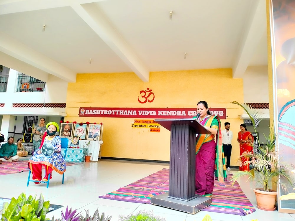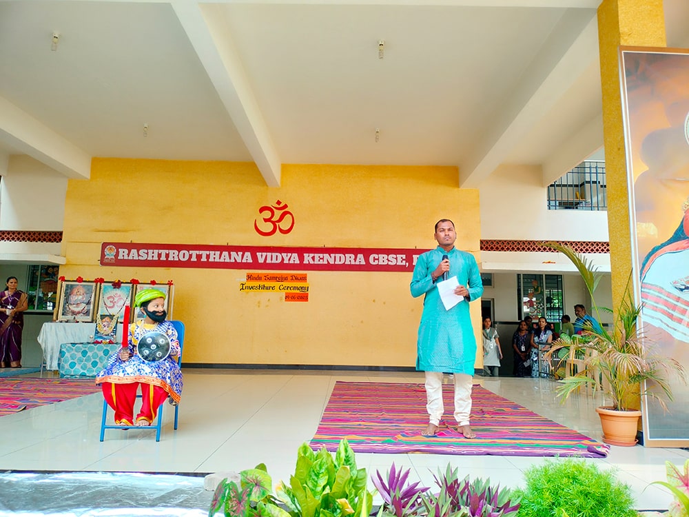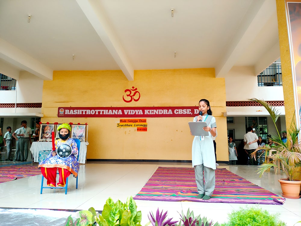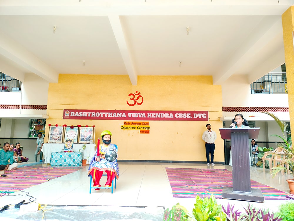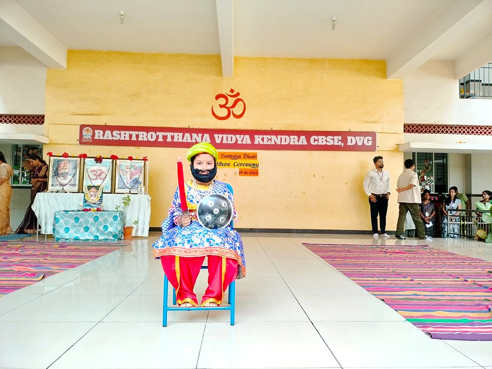 Davanagere, June 9: Hindu Samrajya Divas was celebrated herein Rashtrotthana Vidya Kendra – Davanagere. Kum. Manvi of class 6 spoke in detail about Shivaji Maharaj. Ku. Henit R of class 2 dressed as Varahad Shivaji and shouted slogans.