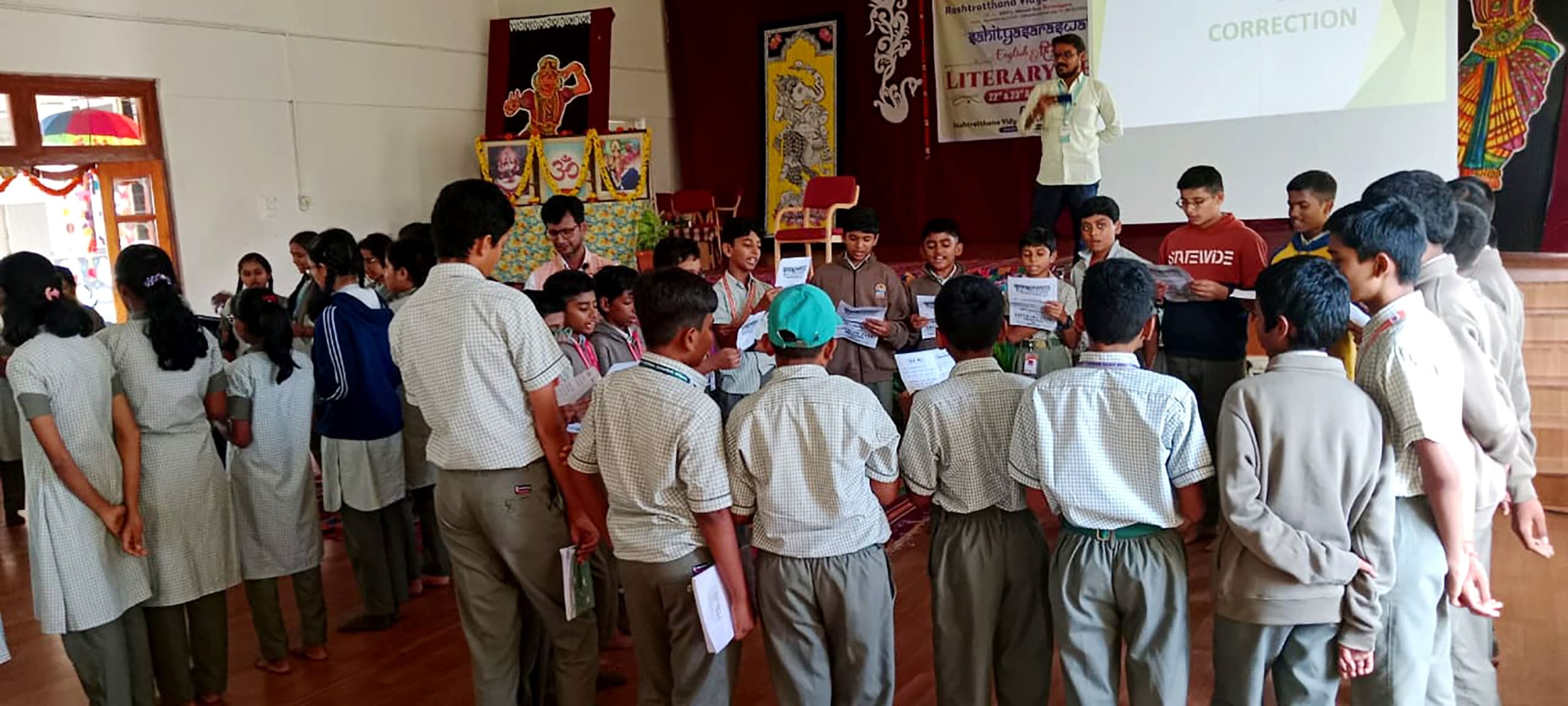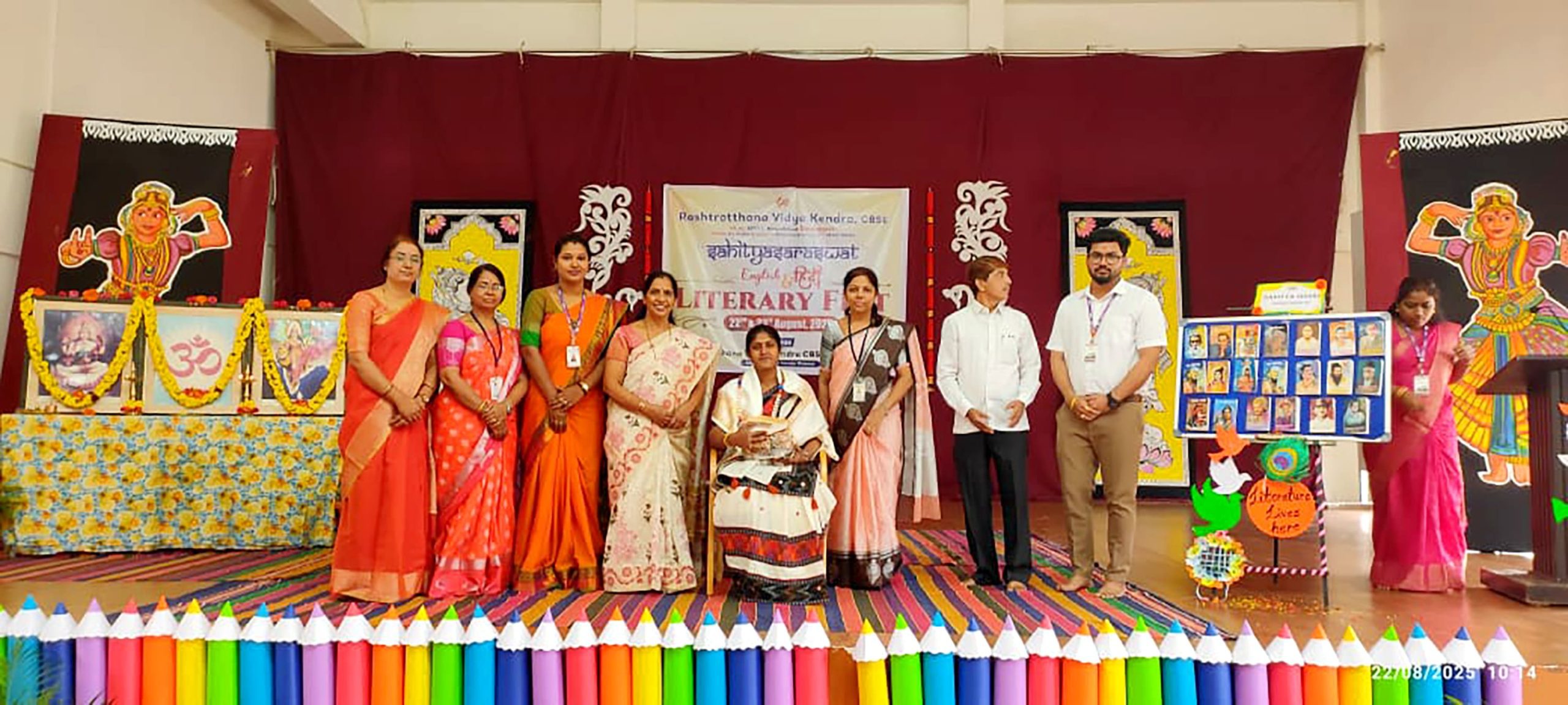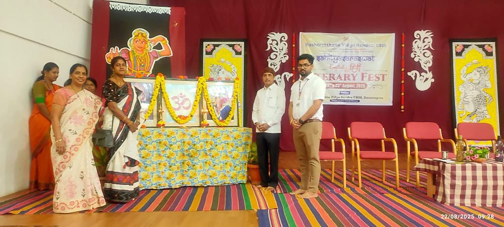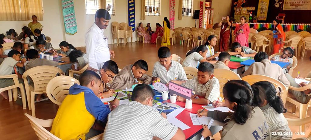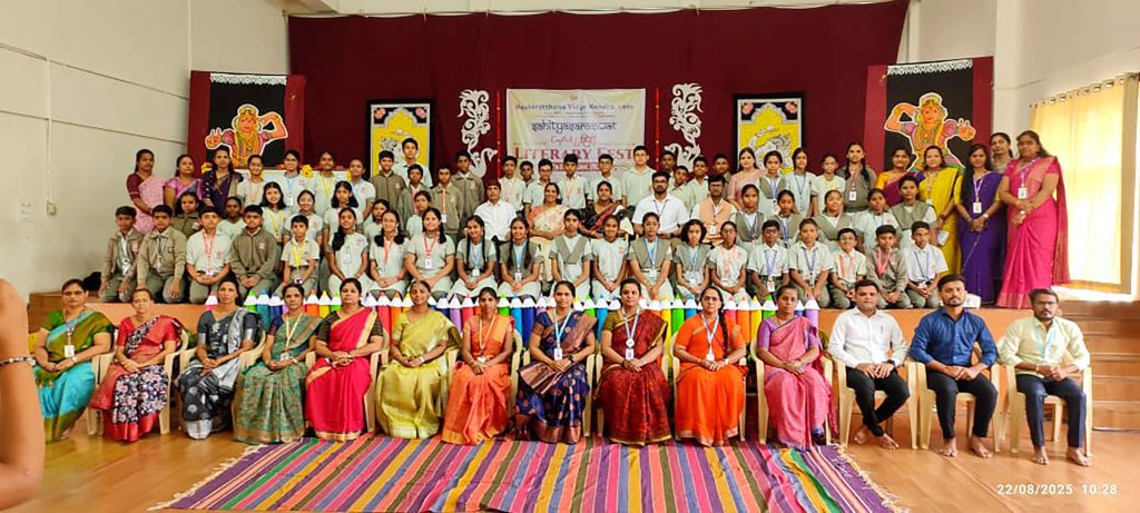 Davanagere, Aug. 22: Sahitya Utsav – Sahitya Saraswat 2025 was organized herein Rashtrotthana Vidya Kendra – Davangere.Dr. S. Yajnasree, Assistant Professor, Department of English, delivered the guest address. She beautifully explained the meaning of “Literature”. She spoke about its essence in human life, and the importance of the history of English literature.Bhasha Bharati books RP60 were placed on the bulletin board and they were inaugurated.Sri Shashidhar Biradar, Vice Principal of RVK, delivered a special address, instilling the literary pledge in the students and urging them to uphold the values of creativity, truth and knowledge through literature. In his address, he stressed the importance of language skills. Highlights of the day and session – 1 Sahitya Utsav-Sahitya Saraswat:Reading Skills Develop your imagination Visit to Davangere University Language Laboratory and Library Grammar Gladiators Devotional Environment Bhajan Sandhya and a soulful visit to Harihara Temple