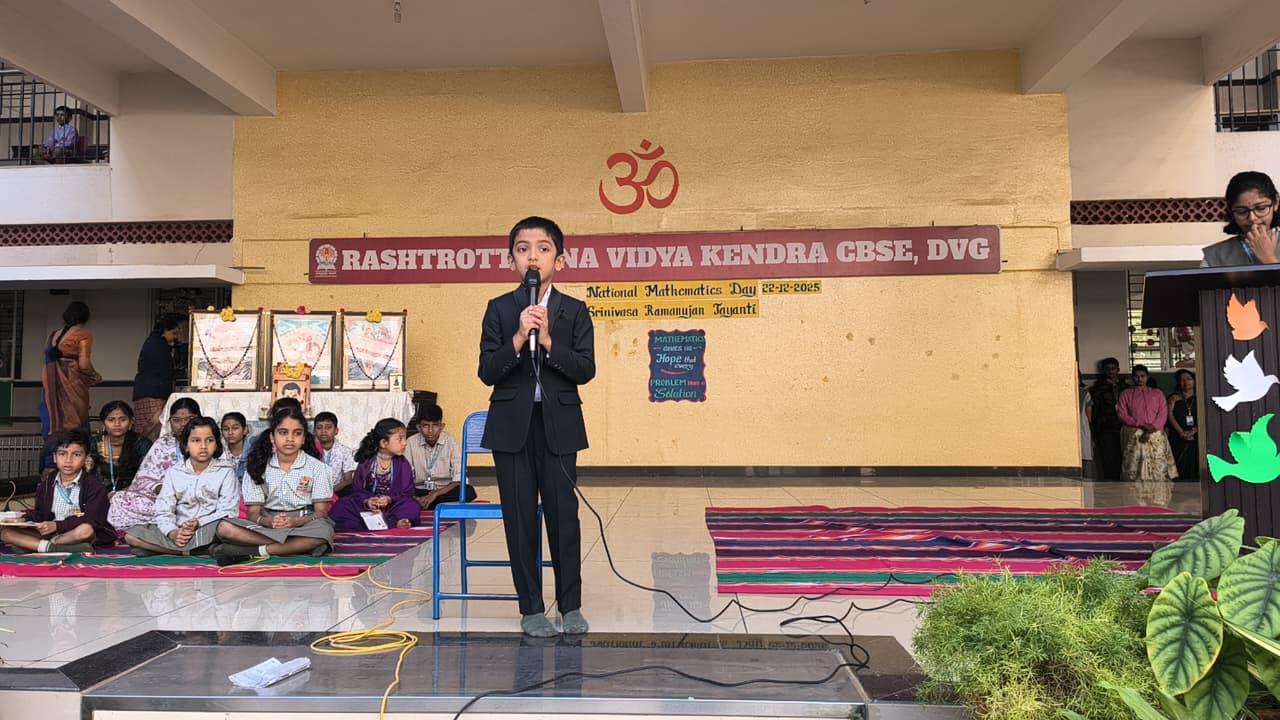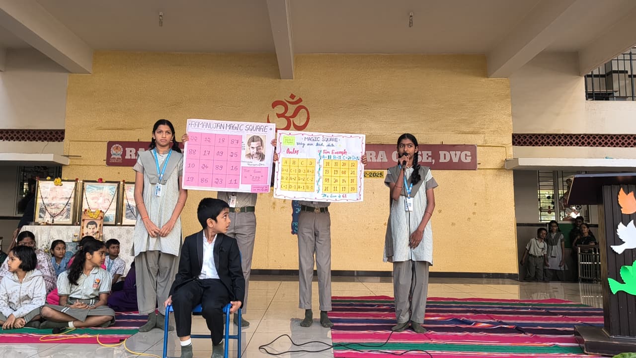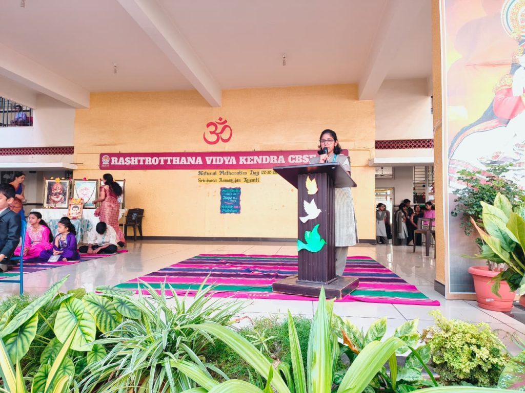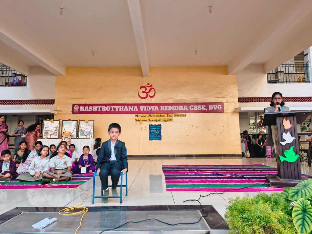 Davanagere, Dec. 22: National Mathematics Day was celebrated herein Rashtrotthana Vidya Kendra – Davanagere as part of the birth anniversary of the great mathematician Srinivasa Ramanujan. The students dressed up as Srinivasa Ramanujan, spoke a few sentences about the importance of Mathematics Day and Ramanujan’s achievements and beautifully explained Ramanujan’s Magic Square.