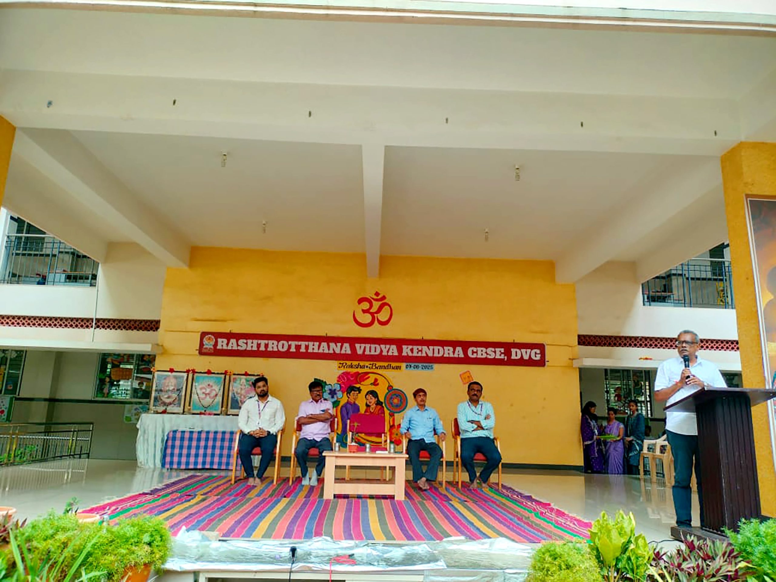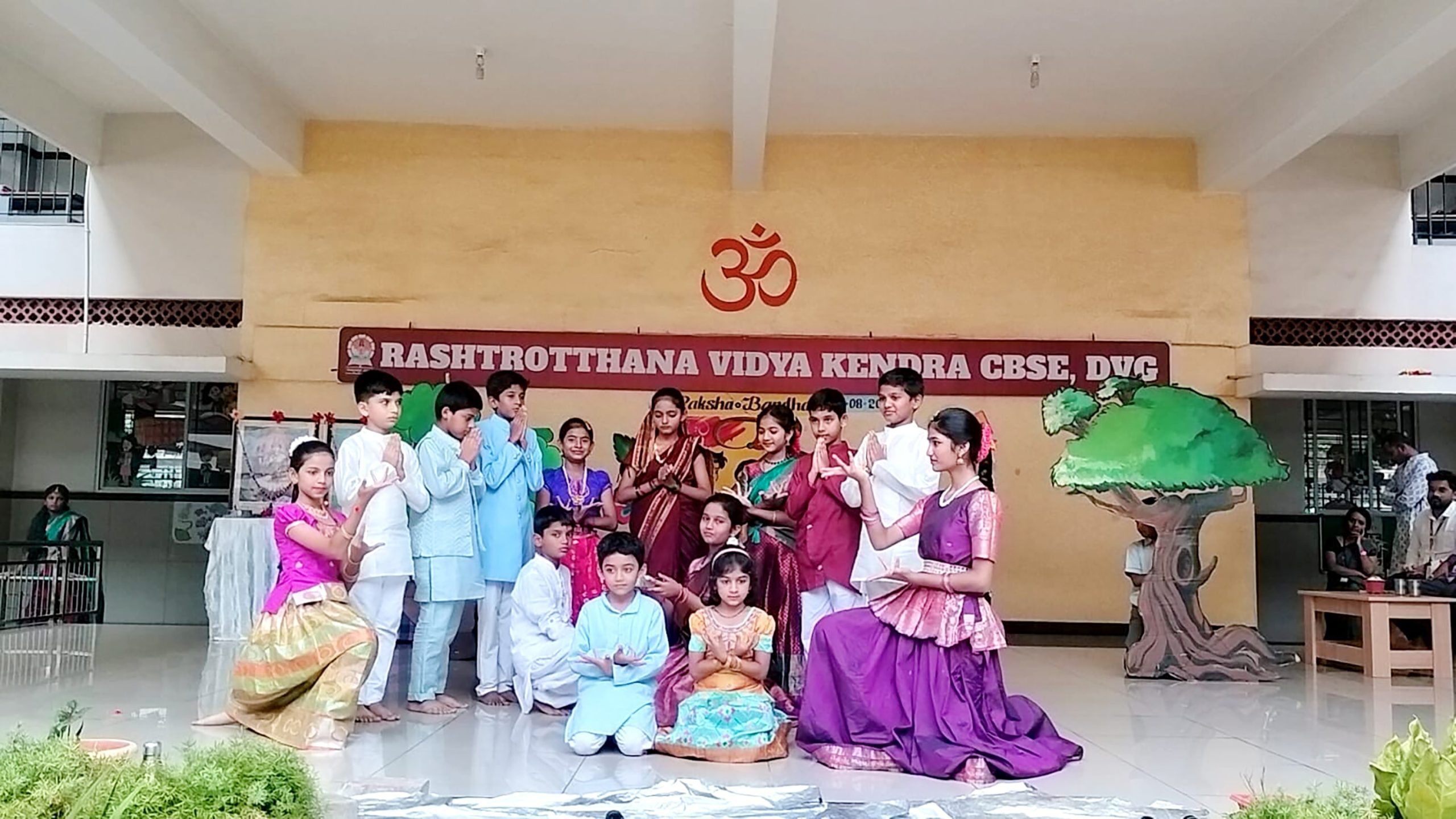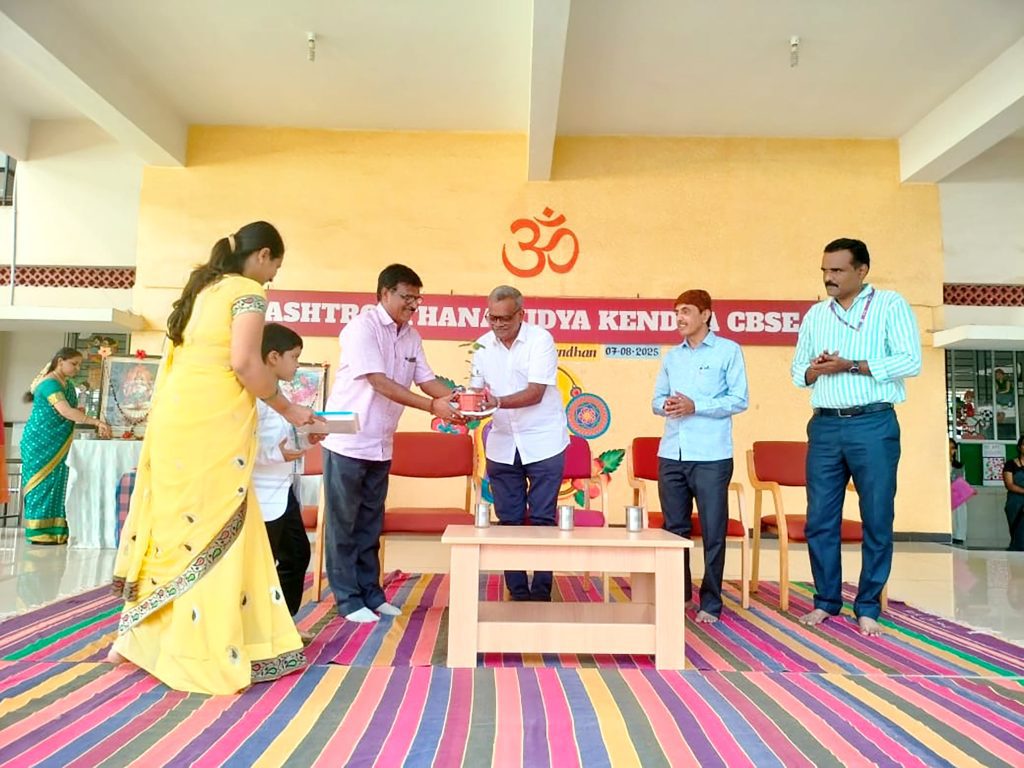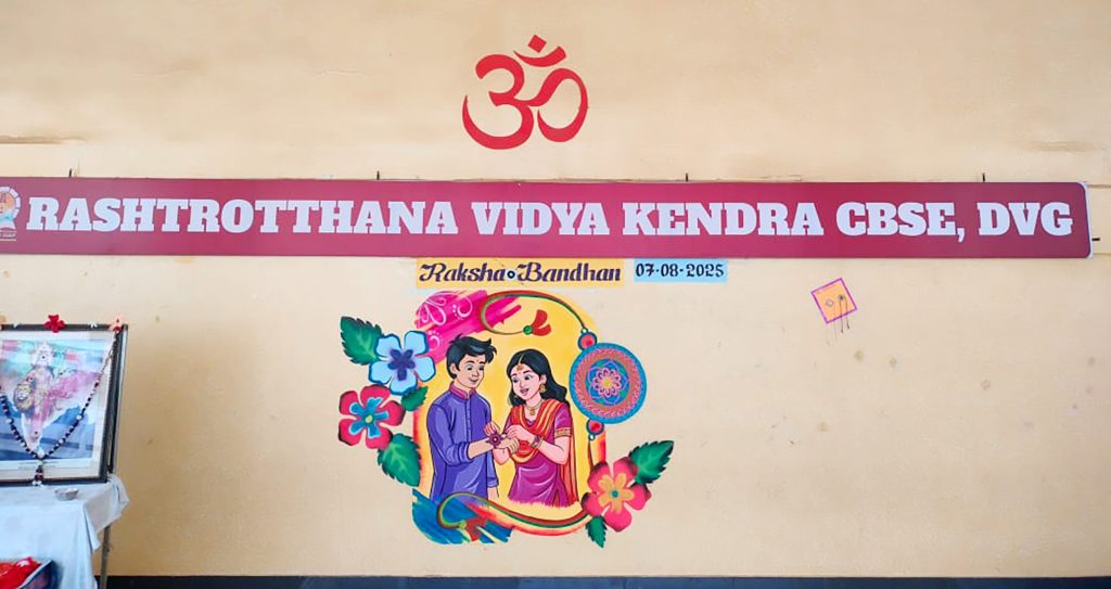 Davangere, Aug. 7: Rakshabandhan program was organized herein Rashtrotthana Vidya Kendra – Davangere. Sri Krishnath, retired manager, Canara Bank, and former president, Rashtroththan Balaga, Bengaluru, were the chief guests. Students gave an insight into Rakshabandhan. Children performed a short play titled ‘Importance of Rakshabandhan’. Students tied Rakhi to the children of their class. A Rakhi making competition was organized behind the aura. As part of the Rakshabandhan celebration, the Panchakarya-based Kutumba Prabodhini conducted the oath-taking ceremony. Smt. Varada administered the oath: