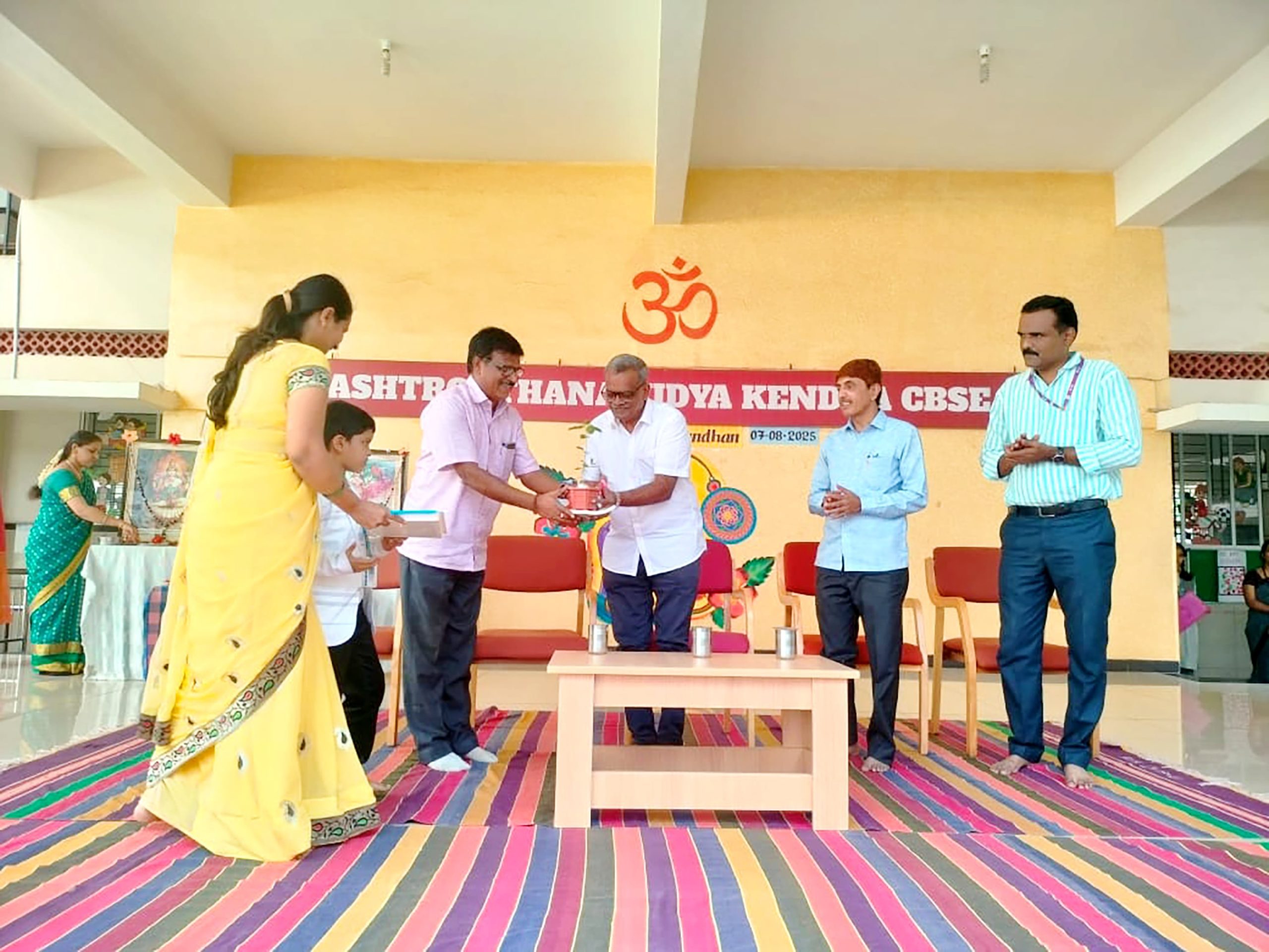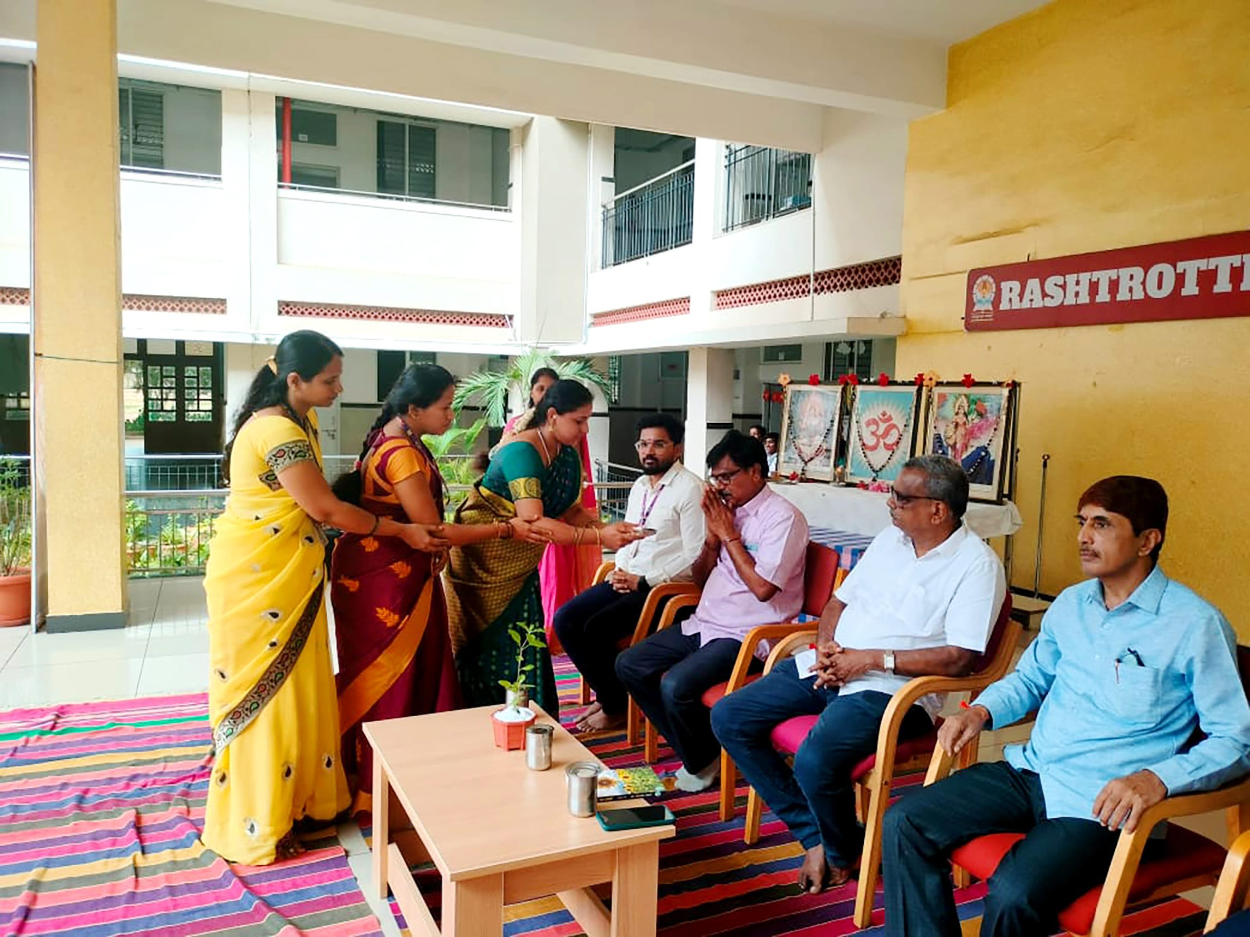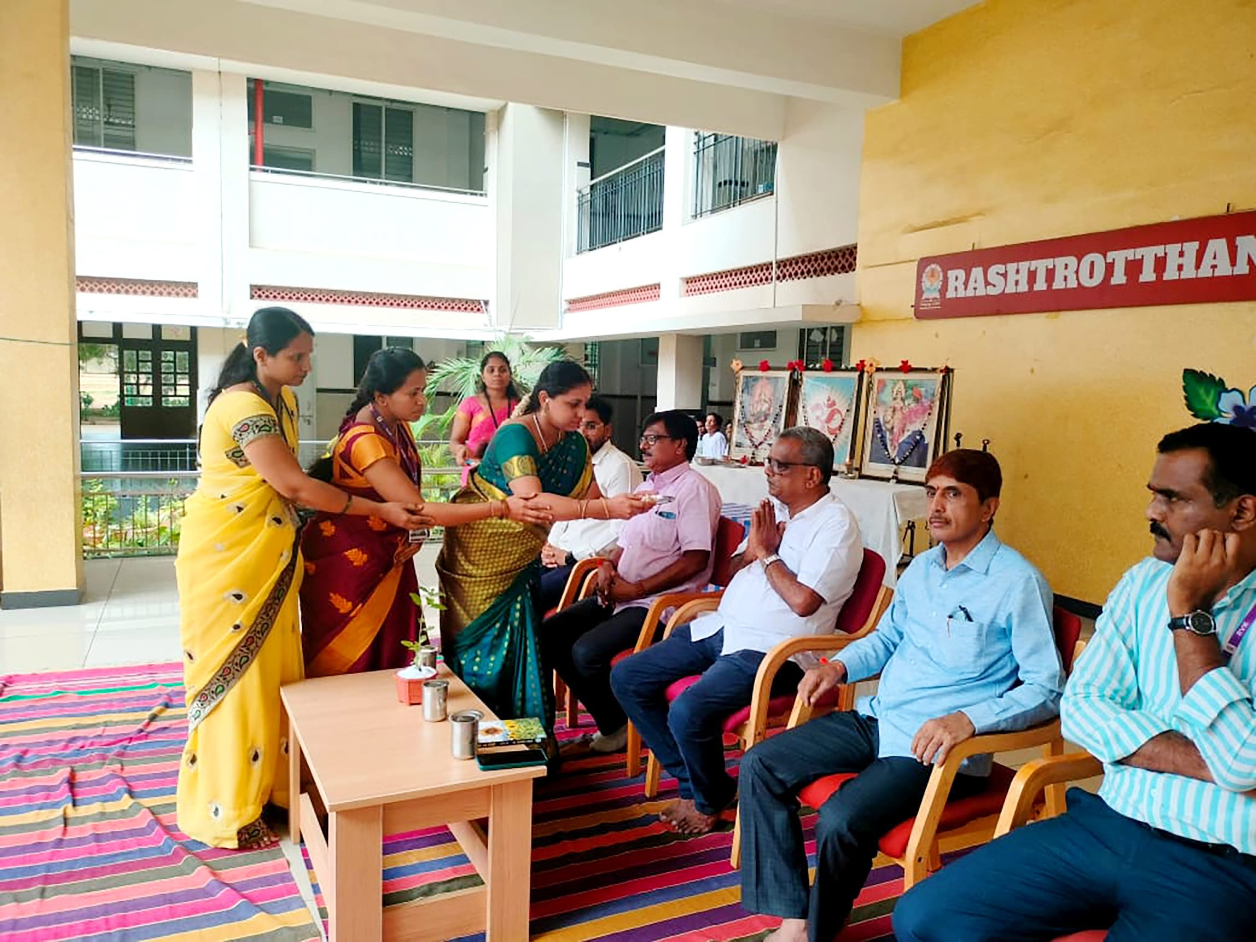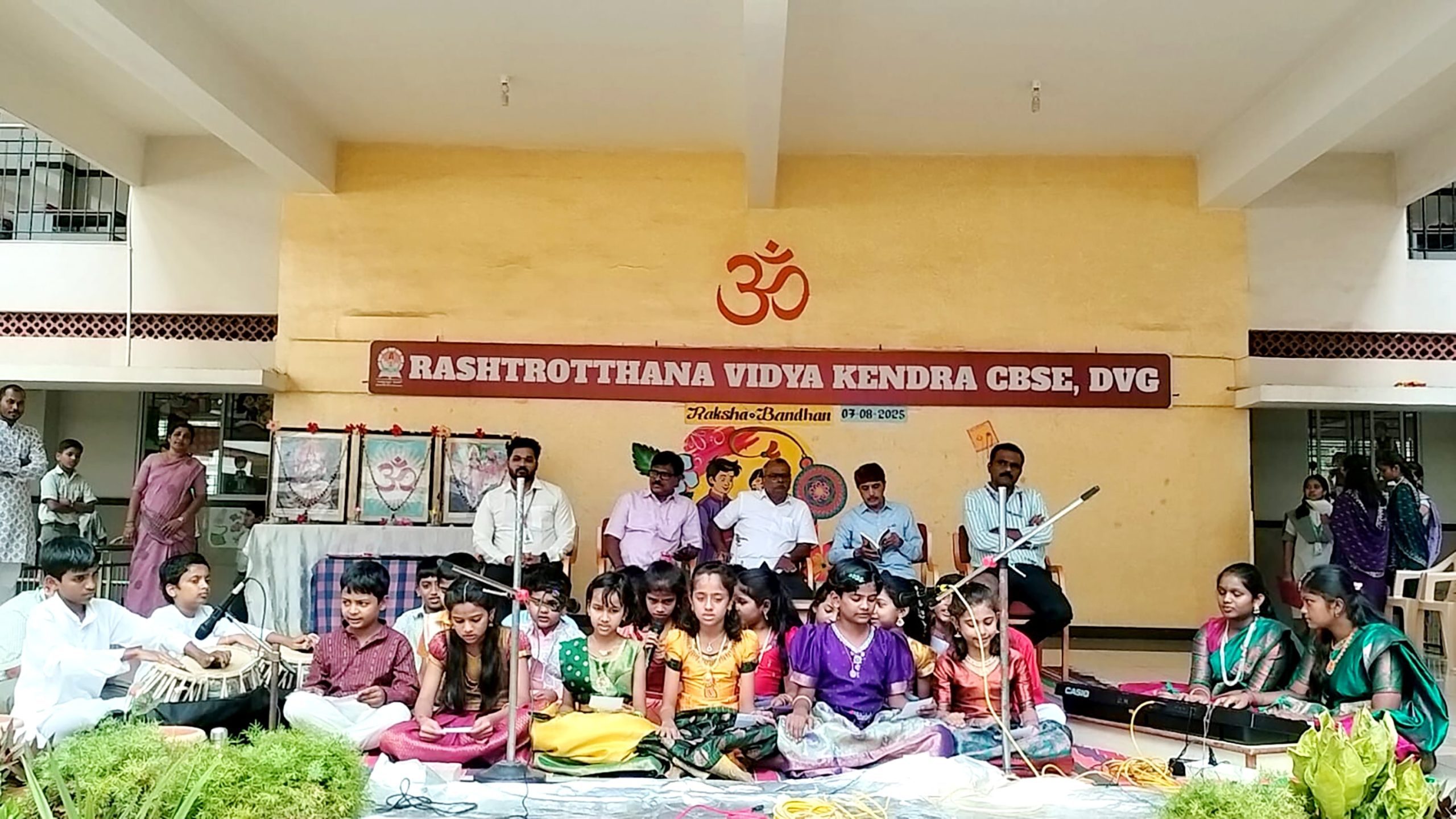 Davangere, Aug. 7: Rakshabandhan program was organized herein Rashtrotthana Vidya Kendra – Davangere. Sri Krishnath, retired manager, Canara Bank, and former president, Rashtroththan Balaga, Bengaluru, were the chief guests. Students gave an insight into Rakshabandhan. Children performed a short play titled ‘Importance of Rakshabandhan’. Students tied Rakhi to the children of their class. A Rakhi making competition was organized behind the aura. As part of the Rakshabandhan celebration, the Panchakarya-based Kutumba Prabodhini conducted the oath-taking ceremony. Smt. Varada administered the oath: