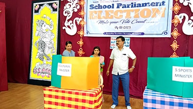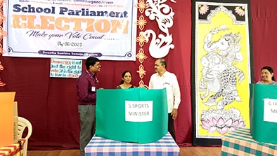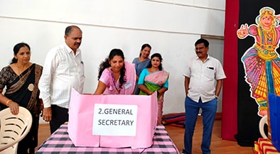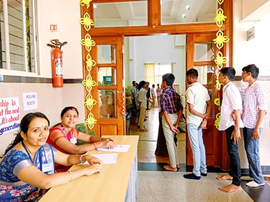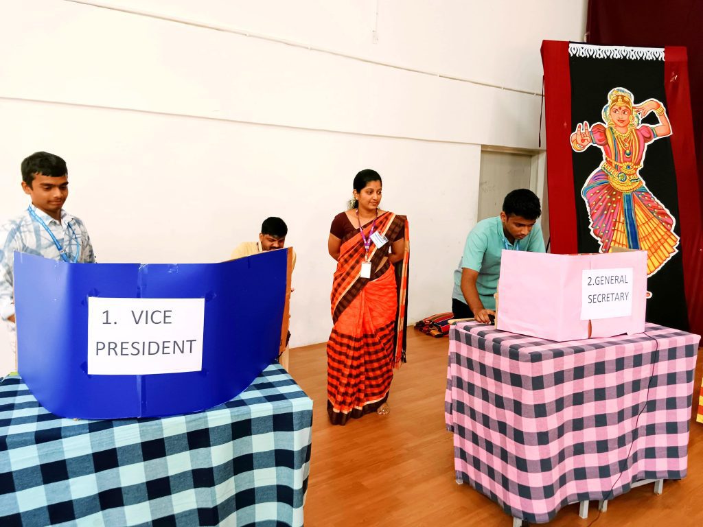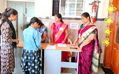 ಮೇಲ್ವಿಚಾರಣೆ: ಶಿಕ್ಷಕರು ಮತ್ತು ಐಟಿ ವಿಭಾಗದ ಸಿಬ್ಬಂದಿ ಸುಗಮ ಮತ್ತು ಪಾರದರ್ಶಕ ಮತದಾನವನ್ನು ಖಚಿತಪಡಿಸಿಕೊಂಡರು. ಸಮಾಜ ವಿಜ್ಞಾನ ವಿಭಾಗವು ಈ ಕಾರ್ಯಕ್ರಮವನ್ನು ಮುನ್ನಡೆಸಿತು.