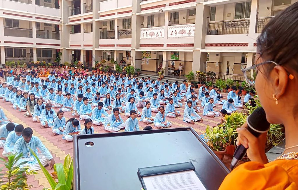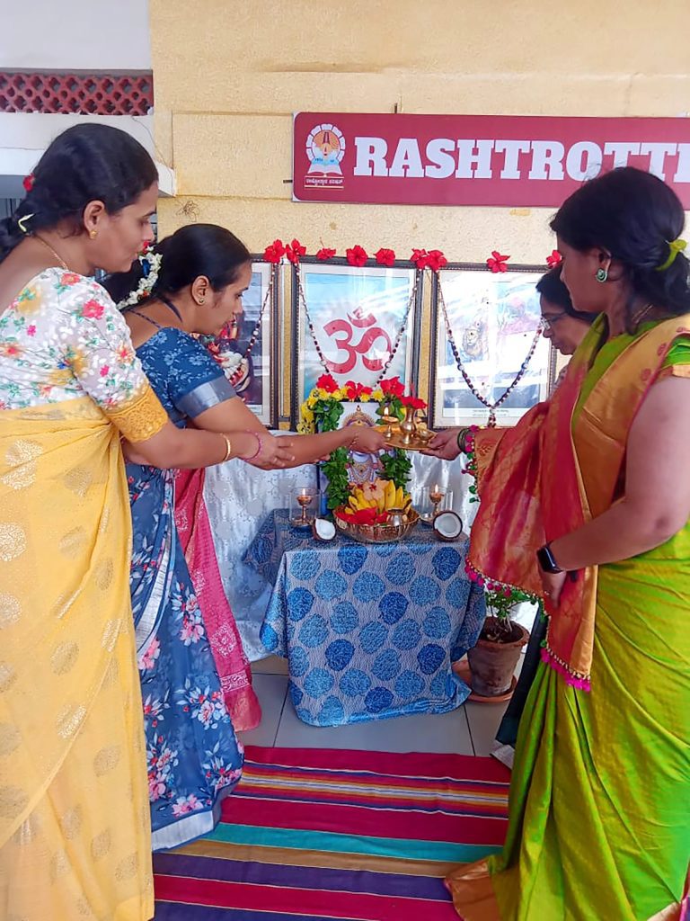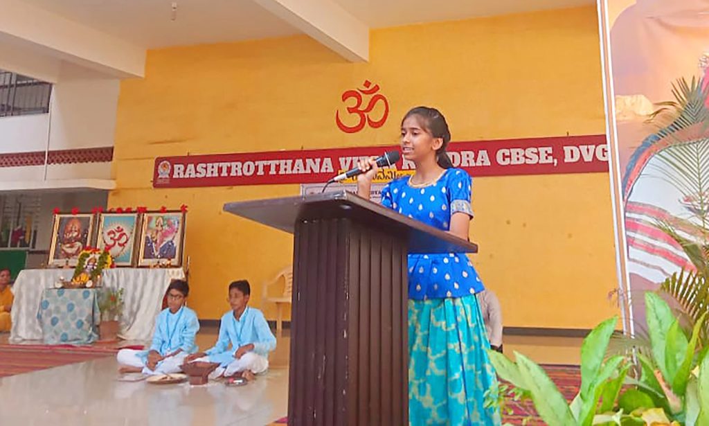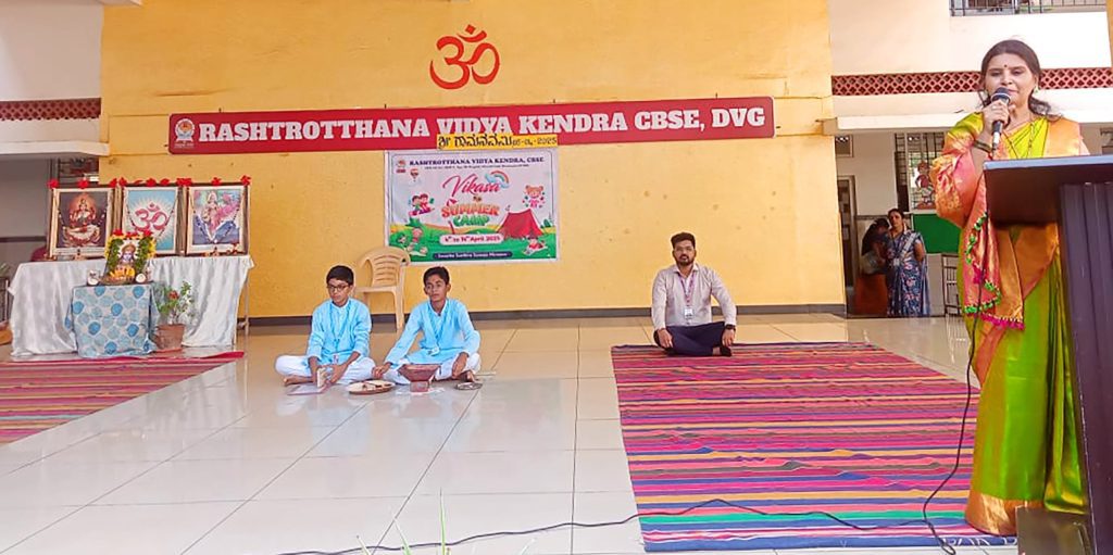 Davangere, Apr. 5: Sri Ram Navami was celebrated herein Rashtrotthana Vidya Kendra – Davangere.Sri Ram’s bhajan was sung under the guidance of Smt. Shobha. Vaishnavi M.A. of the Sushruta department of class 9 spoke in detail about the background of the celebration of Ram Navami and the life path and ideal qualities of Rama.After the program, prasad was distributed to all those present.