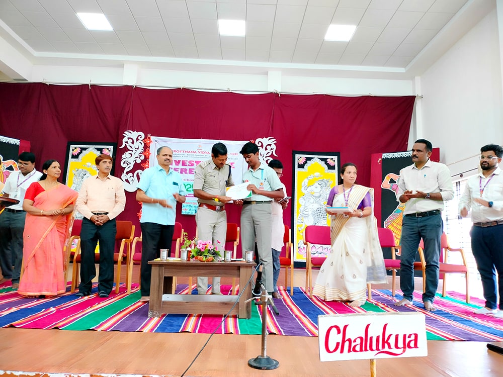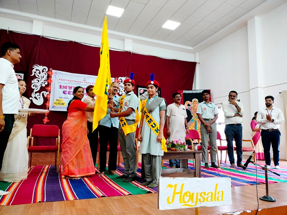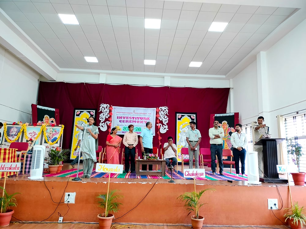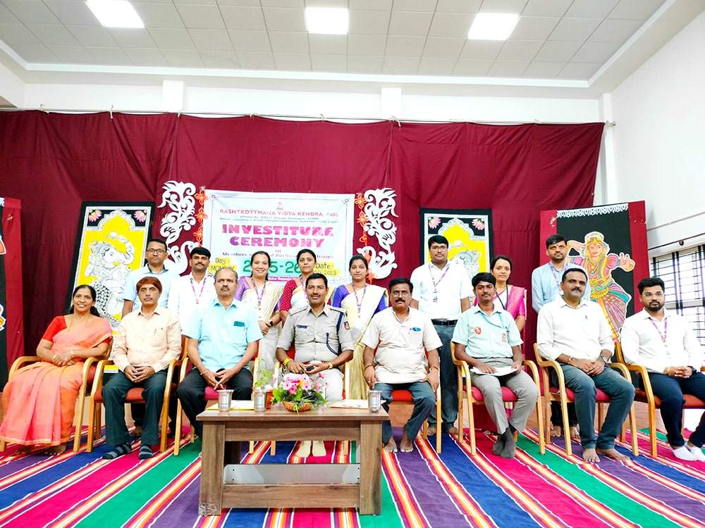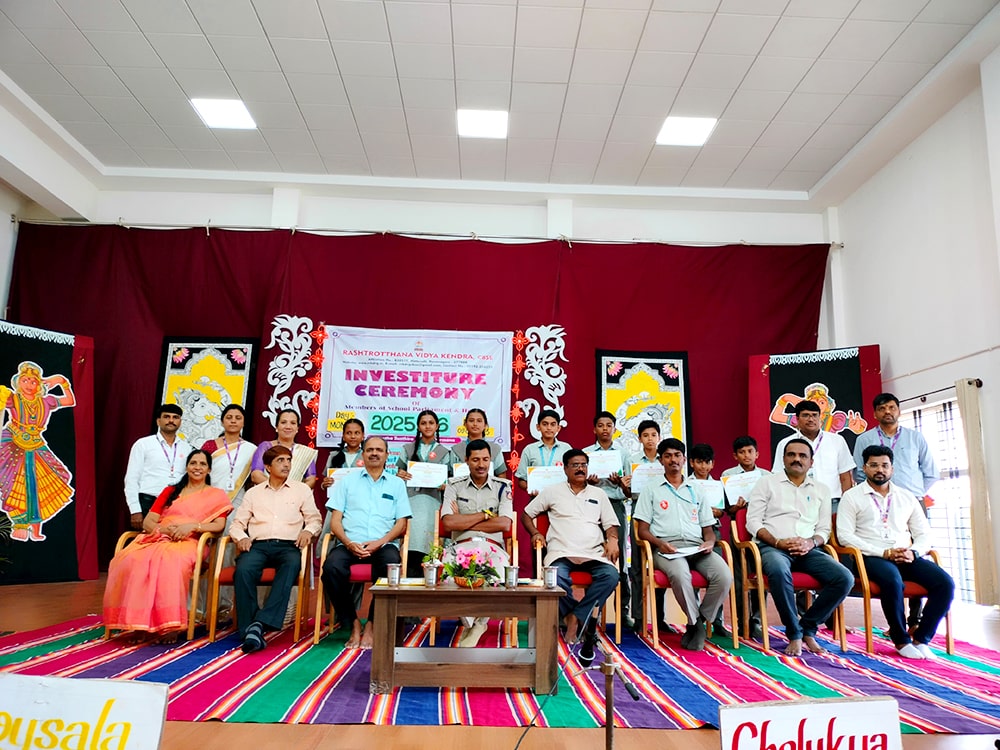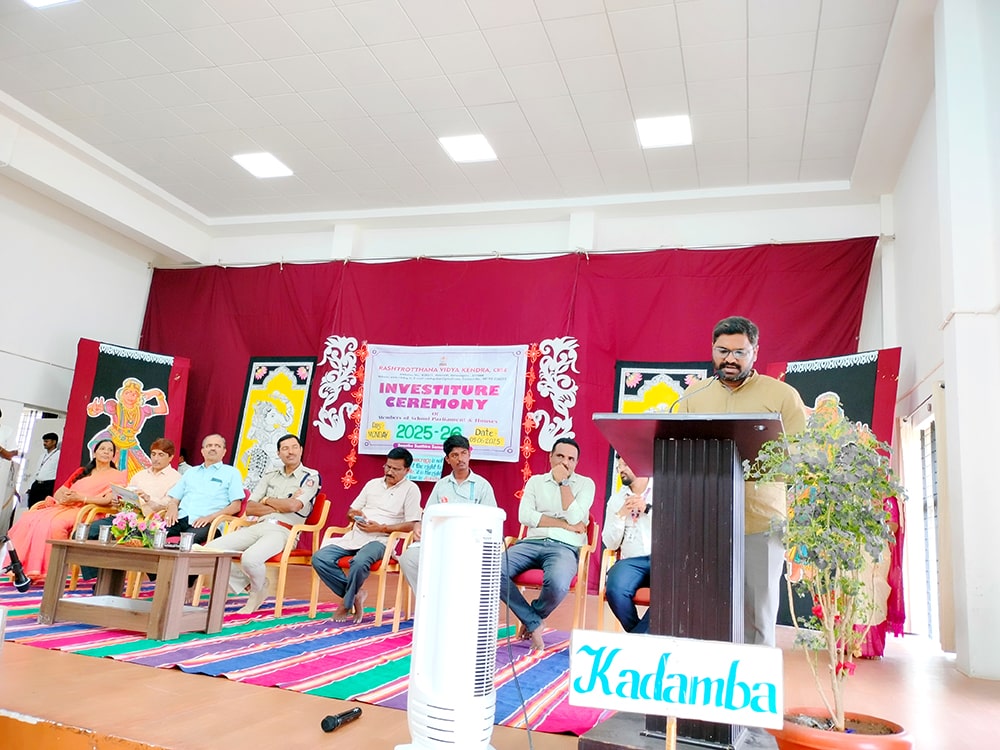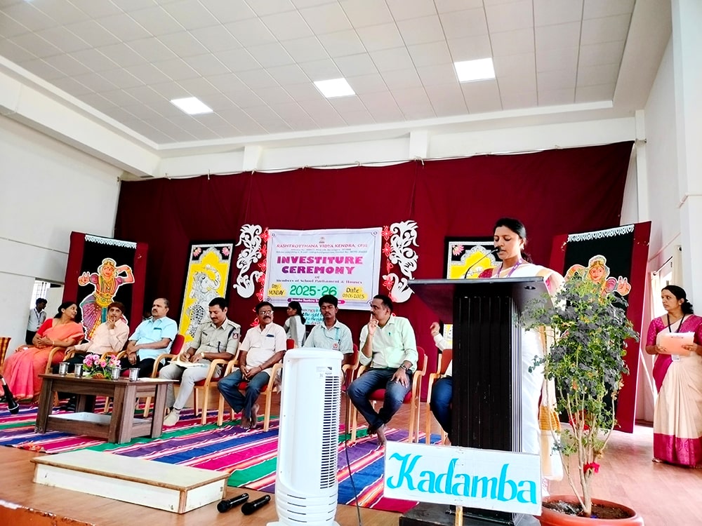 Davanagere, June 9: The oath-taking ceremony was held herein Rashtrotthana Vidya Kendra – Davanagere. The Chief Guest was Sri Prakash P B, DySP, Davanagere. A Prasthavik report highlighting the importance of student governance and the election process and a detailed reading by Sri Manjunath S. were held. An election video demonstration was presented demonstrating the smooth and transparent conduct of the School Parliament elections. The oath-taking ceremony was led by the student leaders, who took a pledge of integrity, responsibility and commitment to leadership. The badging ceremony was held. The elected student representatives were felicitated with badges and sashes by the Chief Guest and dignitaries. The newly elected Vice President, Sri. Dhanush C. Gowda, delivered a speech on behalf of all the student leaders and assured them of serving the school with honesty and dedication. Sri. Santosh announced the Sports House leaders, after which the chief guests and dignitaries presented badges to the 8 House leaders of the four houses of the school, namely Kadamba, Hoysala, Rashtrakuta and Chalukya. Addressing the gathering, the chief guest Sri. Prakash P.B. motivated the student leaders on leadership, discipline and patriotism. The presidential address was delivered by Sri Jayanna H, Secretary of RVK and Head of Administration of RVK CBSE North Cluster Schools, congratulating the selected leaders. He stressed their role in creating a good school environment and society.